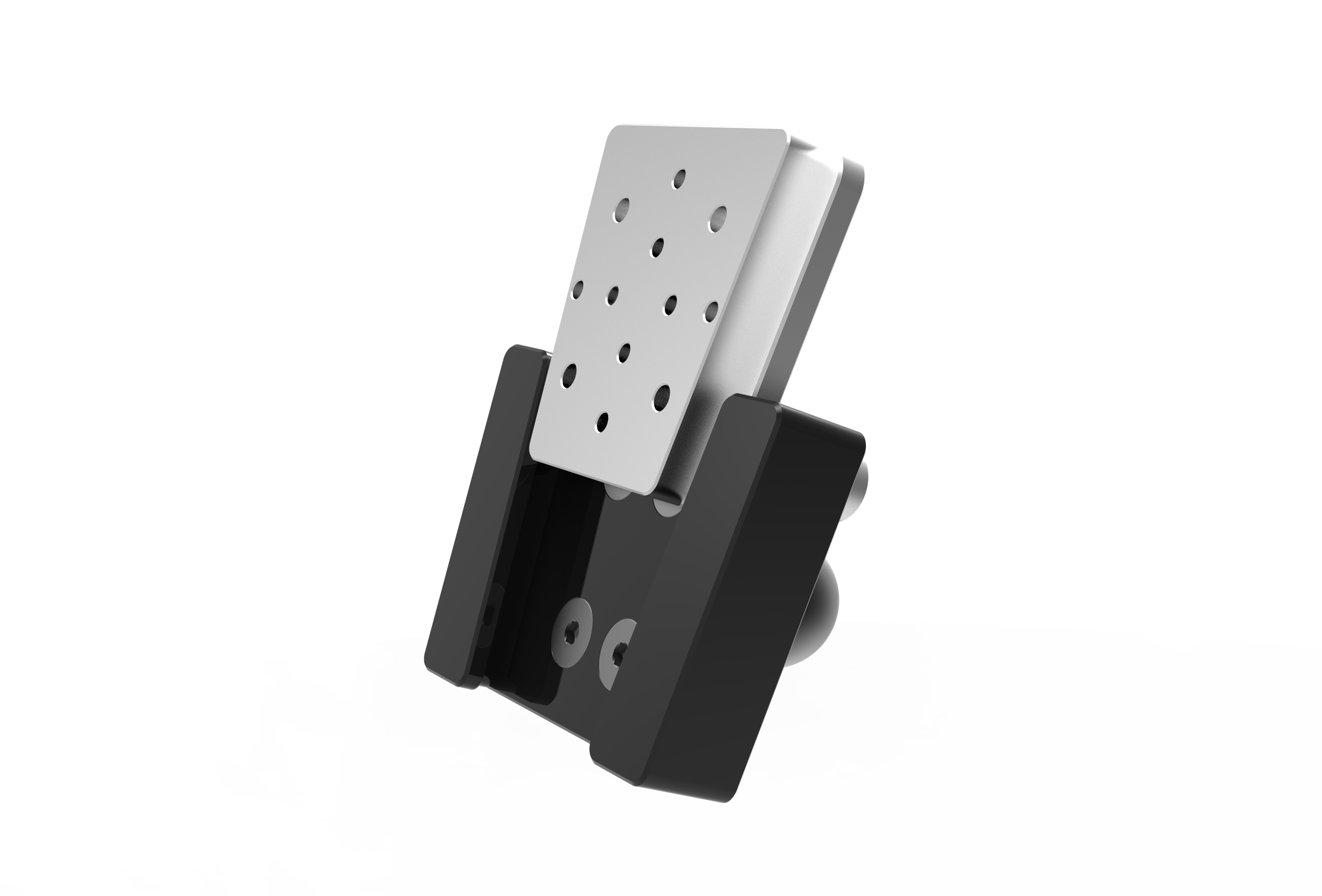 The Rotary Wedge Receiver is designed to conveniently hold devices like tablets or small laptops. It features a double ball attachment, which provides more range in the rotation of whatever it might be holding. Switching a tablet from portrait to landscape format can be done easily without having to remove the device. This wedge receiver is compatible with any Lift and Lock Arm.